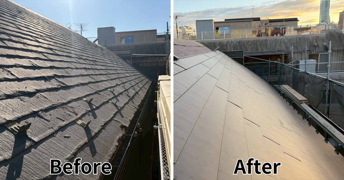 また、表面が剥がれて落下するリスクがある状態でも、屋根全体を覆って納め直すことで、安心して暮らせる状態へ整えることができます。