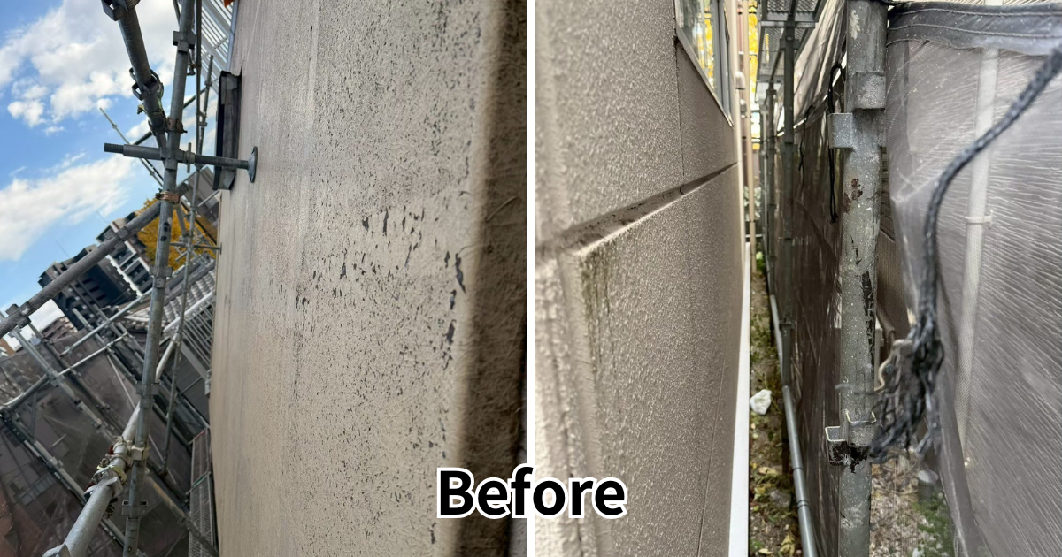 塗装前の外壁を見ると、表面に細かな汚れの付着や、質感の変化が出ているのが分かります。