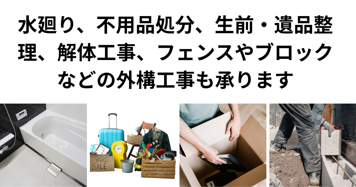 柏市の工務店が対応する住まいのお困りごと|水廻り工事・不用品処分・遺品整理・解体・外構工事も相談可能