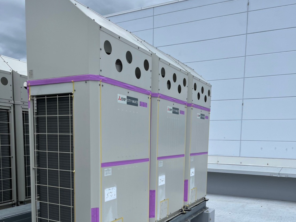 エムズ工業では、屋根や外壁だけでなく、空調設備まわりの環境にも目を向けた施工提案を行っています。