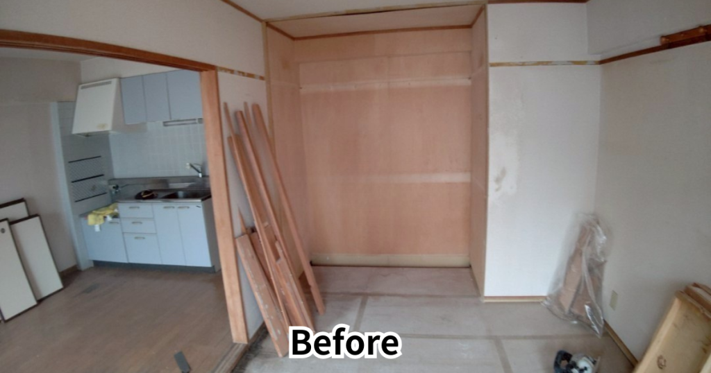 解体と大工工事とクロス工事を主に対応させていただきました。