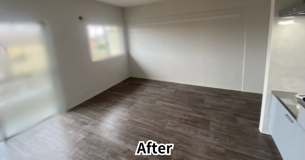 その他は主に全部屋のクロスを張り替え、畳の部屋は畳を剥がして下地を組み、クッションフロアを貼りました。